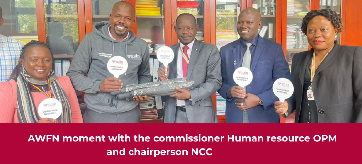 This initial spark led to an invitation to present before OPM’s Nutrition Coordination Committee (NCC) comprising representatives from various departments. What followed was a series of meaningful interventions between GAIN Uganda and OPM, including a significant planning meeting in Entebbe sponsored under the Workforce Nutrition Initiative.