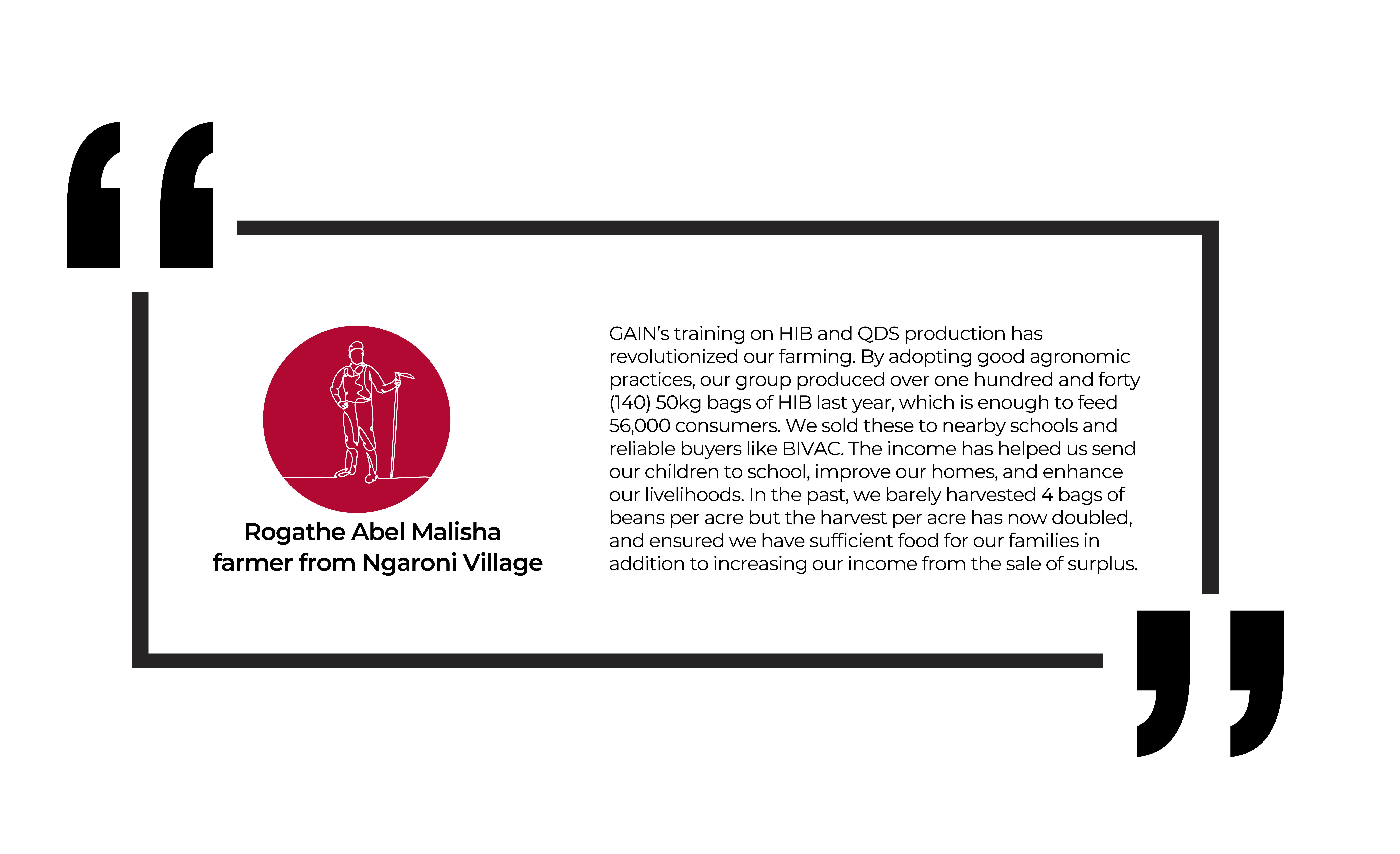 For Rogathe Abel Malisha, a farmer in Levishi Ward, life has completely changed since adopting HIB and QDS. "Before GAIN’s training, we barely harvested four bags of beans per acre,” she shares. "But now, using QDS and better farming techniques, our group produced over seven tons of HIB last year. The income has helped us send our children to school, improve our homes, and secure food for our families."
