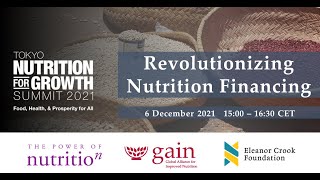 This session co-organised by The Power of Nutrition, GAIN, Eleanor Crook Foundation, and Palladium Impact Capital, intends to share solutions and mobilize new thinking around the N4G Cross-Cutting theme of "Securing new investment and driving innovation in nutrition financing". It will bring together various organizations, representing different sectors, to pool thinking on structuring innovative financing mechanisms. The session will offer tangible views on how to mobilize new capital at scale, towards revolutionizing nutrition funding and make the sector less dependent on traditional financing flows.