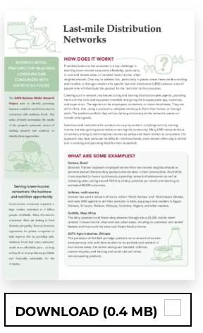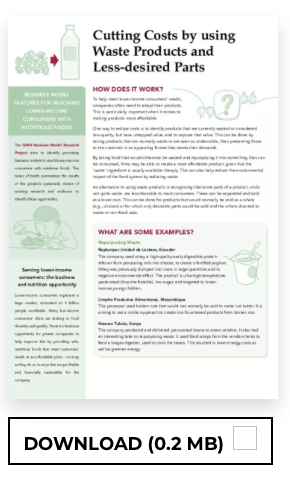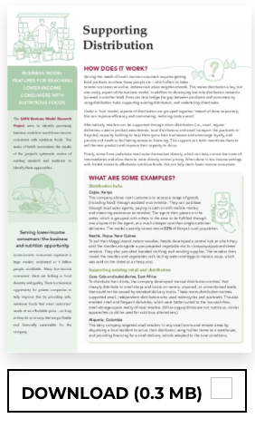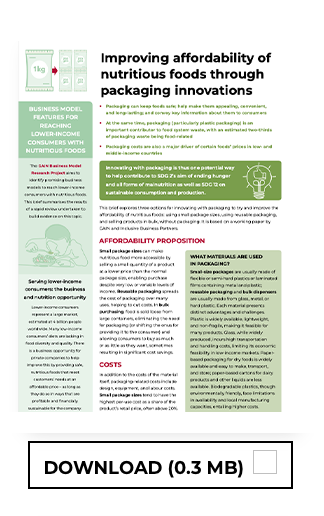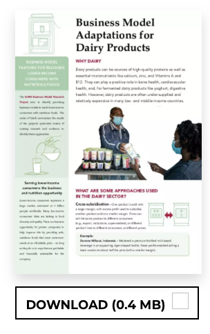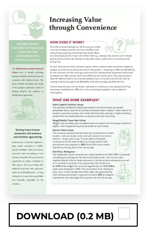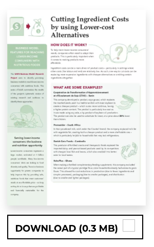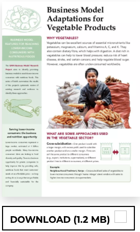 In many low- and middle-income countries, low-income consumers’ diets are often lacking in food diversity and quality. Private companies can help improve this if they can provide safe, nutritious foods that meets customers’ needs at an affordable price—but they must also do so in ways that are profitable and sustainable for the company.