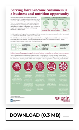 The GAIN Business Model Research (BMR) Project, funded by the Netherlands Ministry of Foreign Affairs, aims to identify promising business models that can do just this.