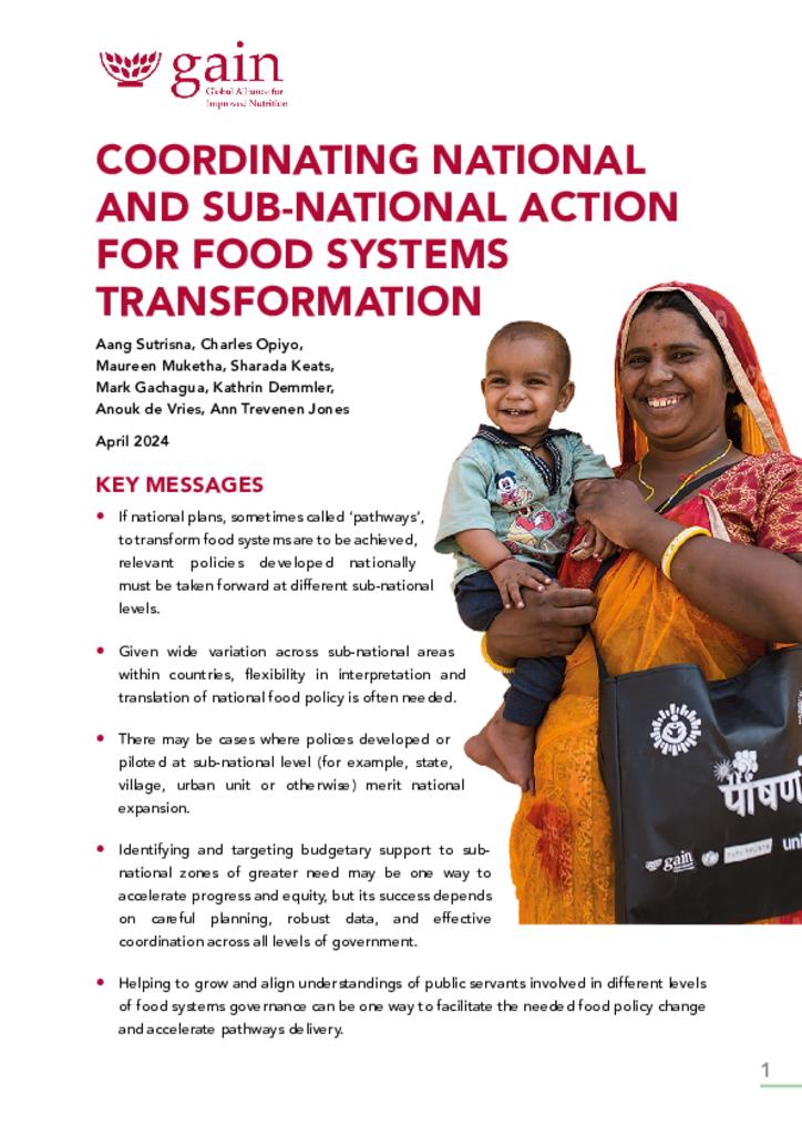 This paper briefly sets out why this is an important issue, along with examples from two countries where the Global Alliance for Improved Nutrition (GAIN) is working in support of such efforts and some implications of this for ongoing work to transform food systems for the benefit of people and planet.