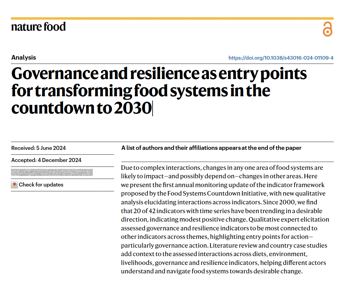 Governance and resilience as entry points for transforming food systems in the countdown to 2030