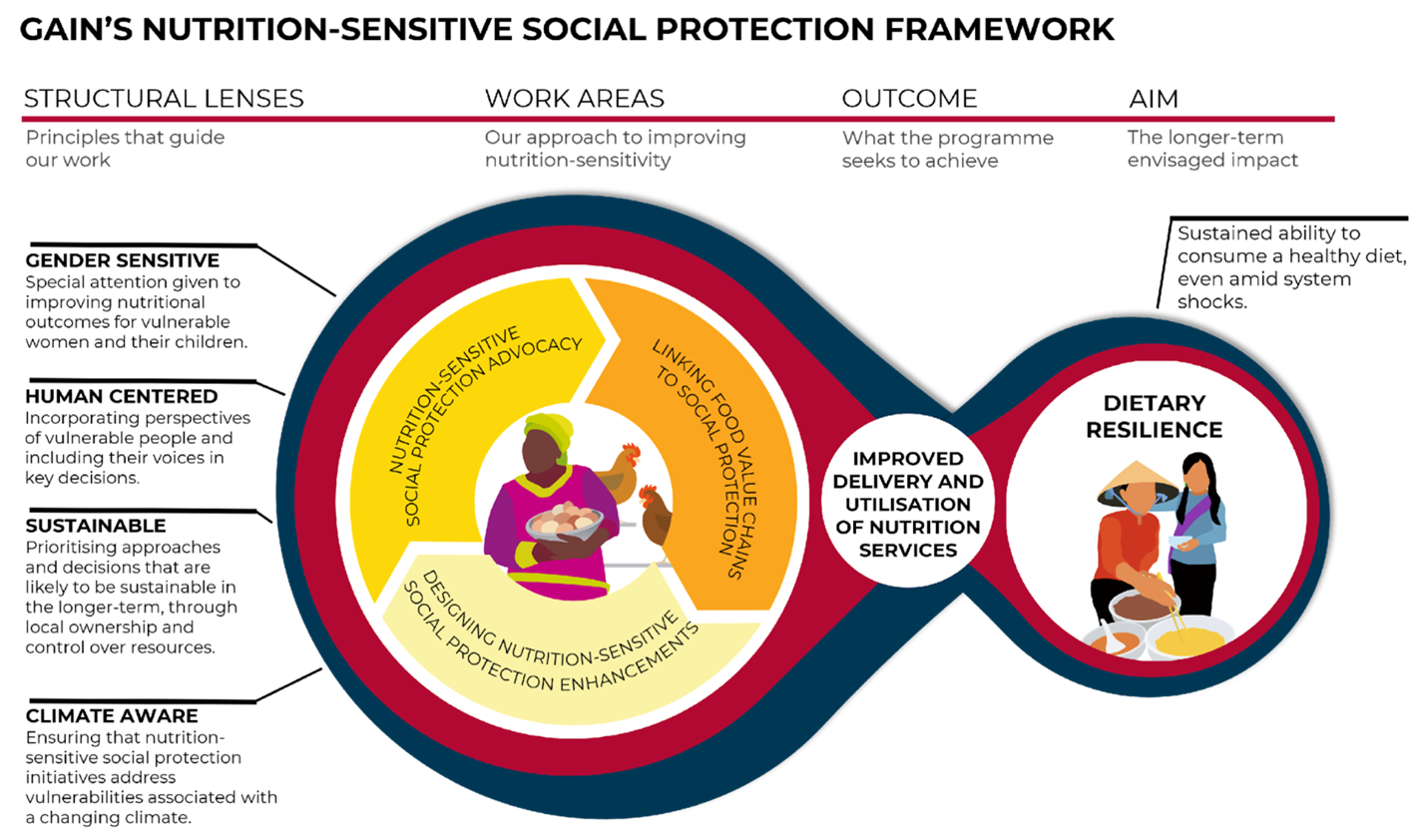 GAIN's work in these areas seeks to improve both the delivery and effective utilisation of nutrition services in social protection systems, ensuring that recipients attain the intended nutritional benefits. We believe that improving the delivery and utilisation of nutrition-sensitive social protection is key to achieving longer-term dietary resilience for the most vulnerable households.